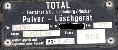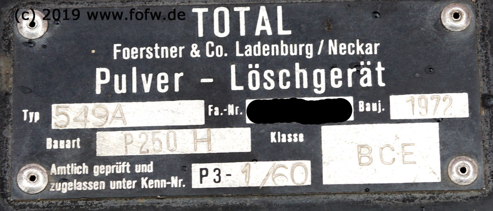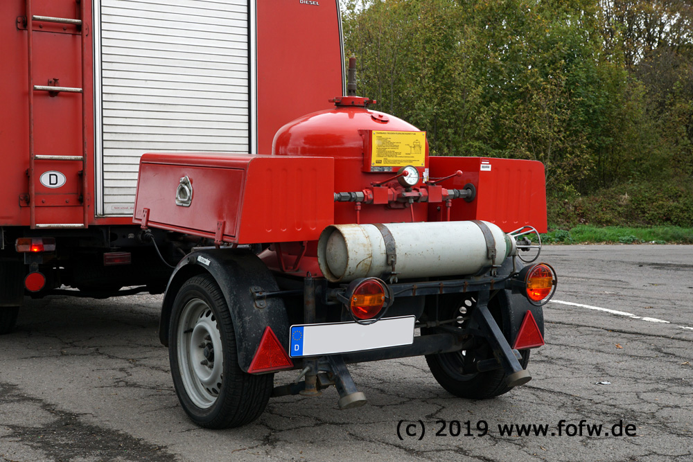 | Pulverlöschanhänger TOTAL PLA250H / P250H (1972) Als nunmehr dritte Veriante eines Pulverlösch-Anhängers kam im Oktober 2018 ein zweiter Pulverlöschanhänger der Firma TOTAL zur FOFW. Ausschlaggebend für den Kauf (bzw. die Ersteigerung) von der Feuerwehr Königswinter war die Ausstattung mit höhenverstellbarer Deichsel im Vergleich zum bisherigen PLA250 von 1963.